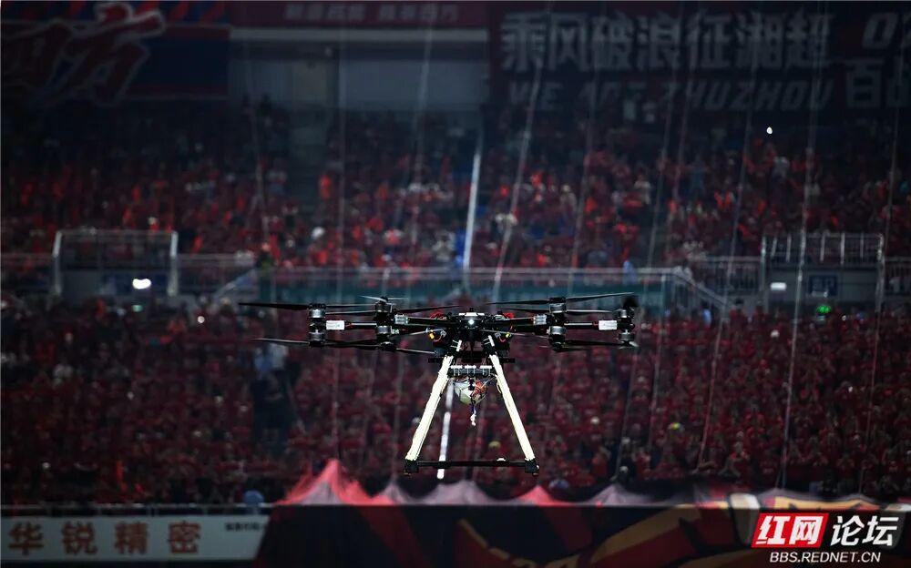 两件8米高巨型球衣与22米长高铁模型,将工业荣耀与足球热情巧妙连接。比赛由北斗定位无人机完成开球,首次实现天基科技与绿茵赛事的融合,生动诠释了株洲作为“北斗应用创新之城”与“制造名城”的独特魅力。